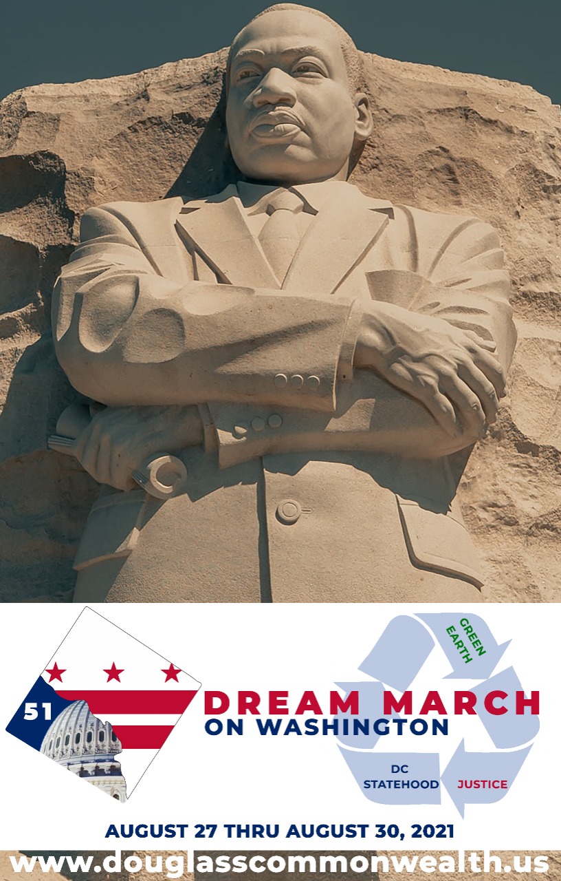The Dream March on Washington for DC Statehood, Green Earth, and Justice Planning Committee would like to invite you to participate in a "Dream March on Washington" to commemorate the anniversary of Martin Luther King, Jr.'s 1963 March on Washington.
